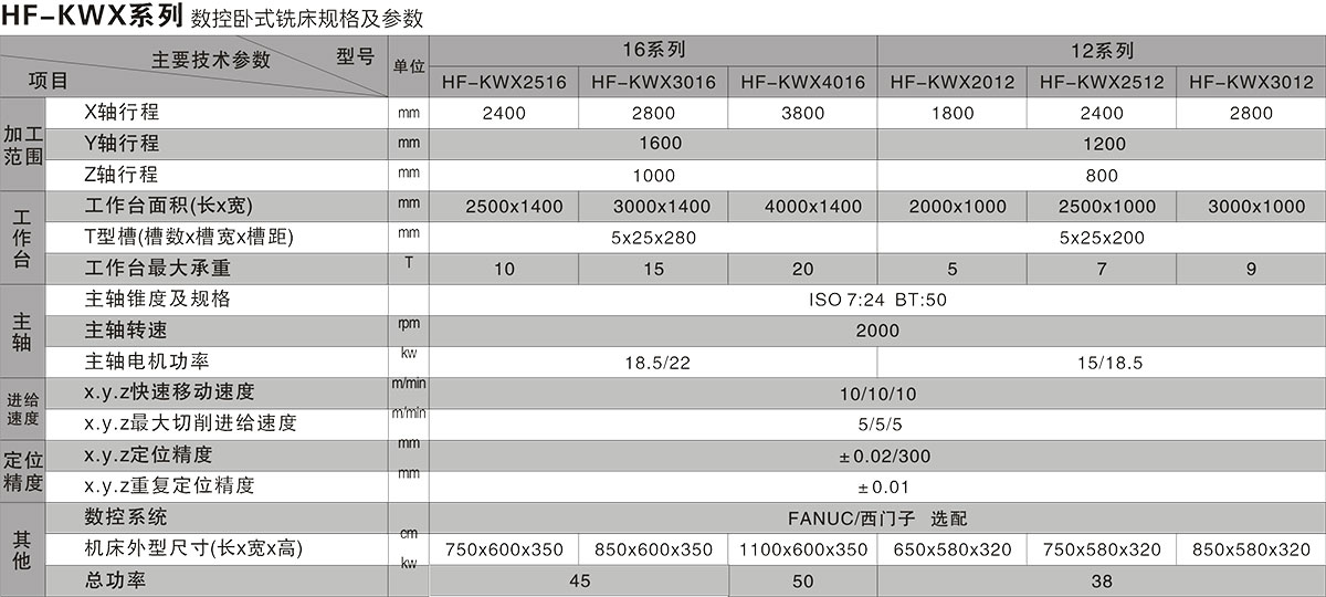 HF-KWX系列數控臥式銑床